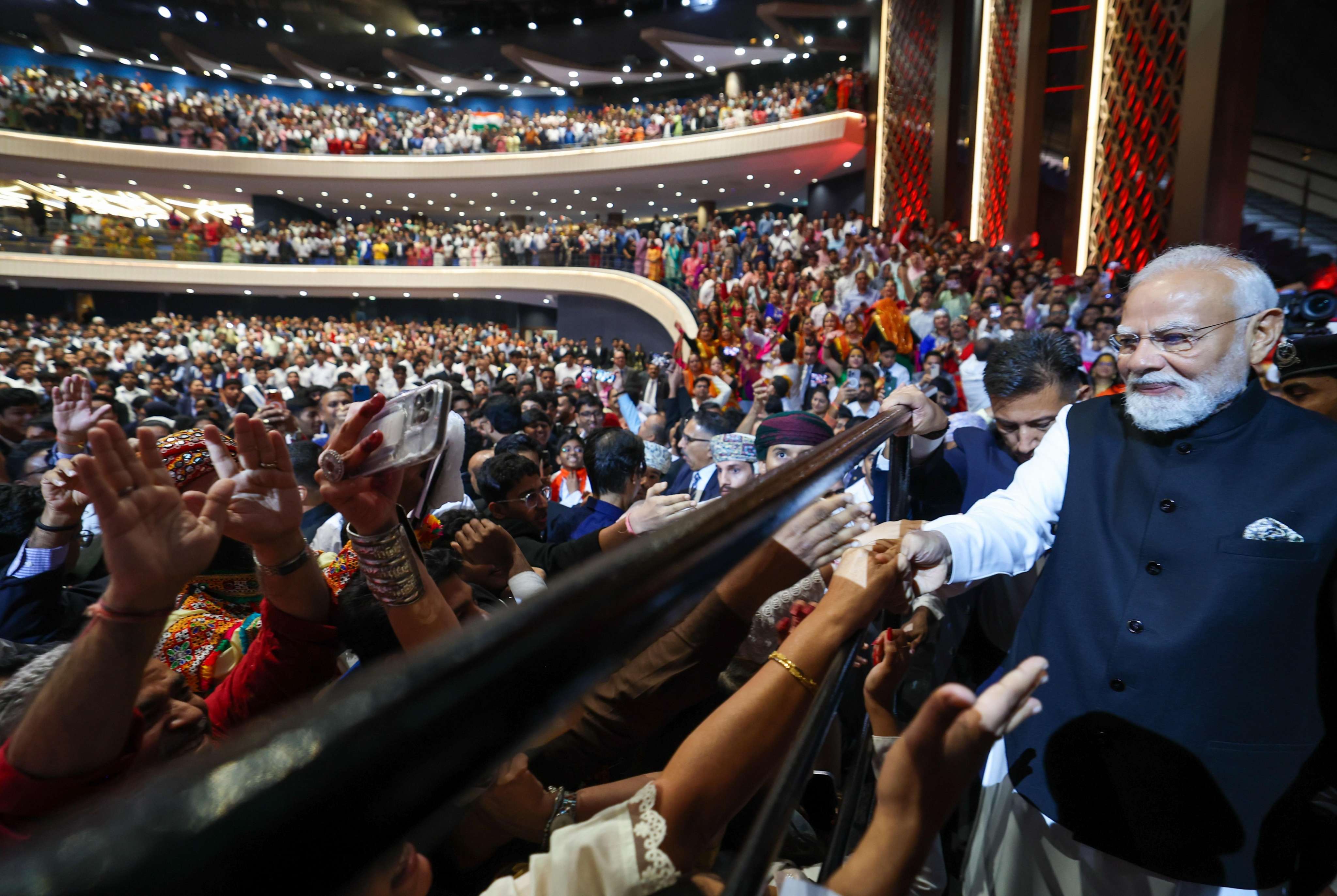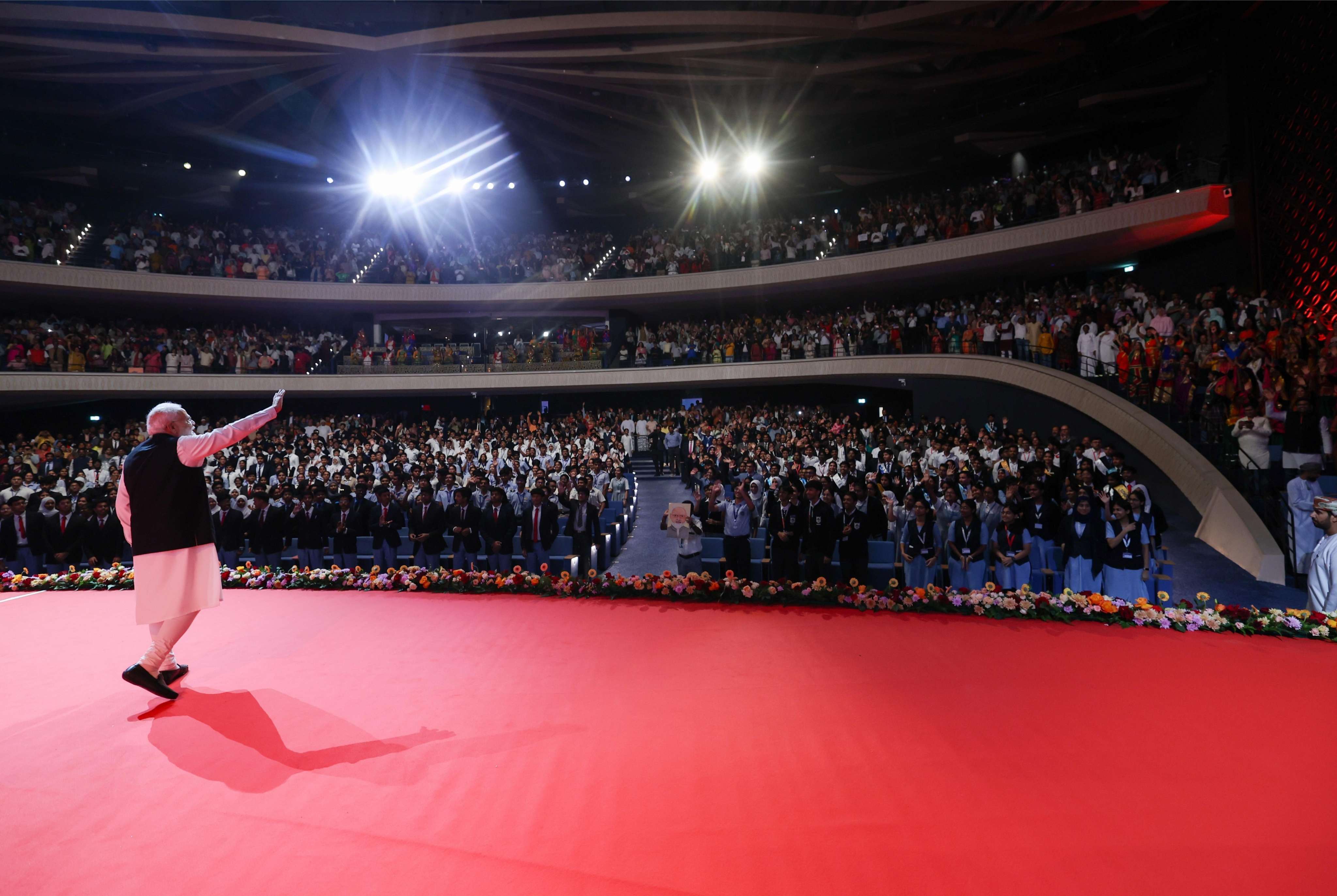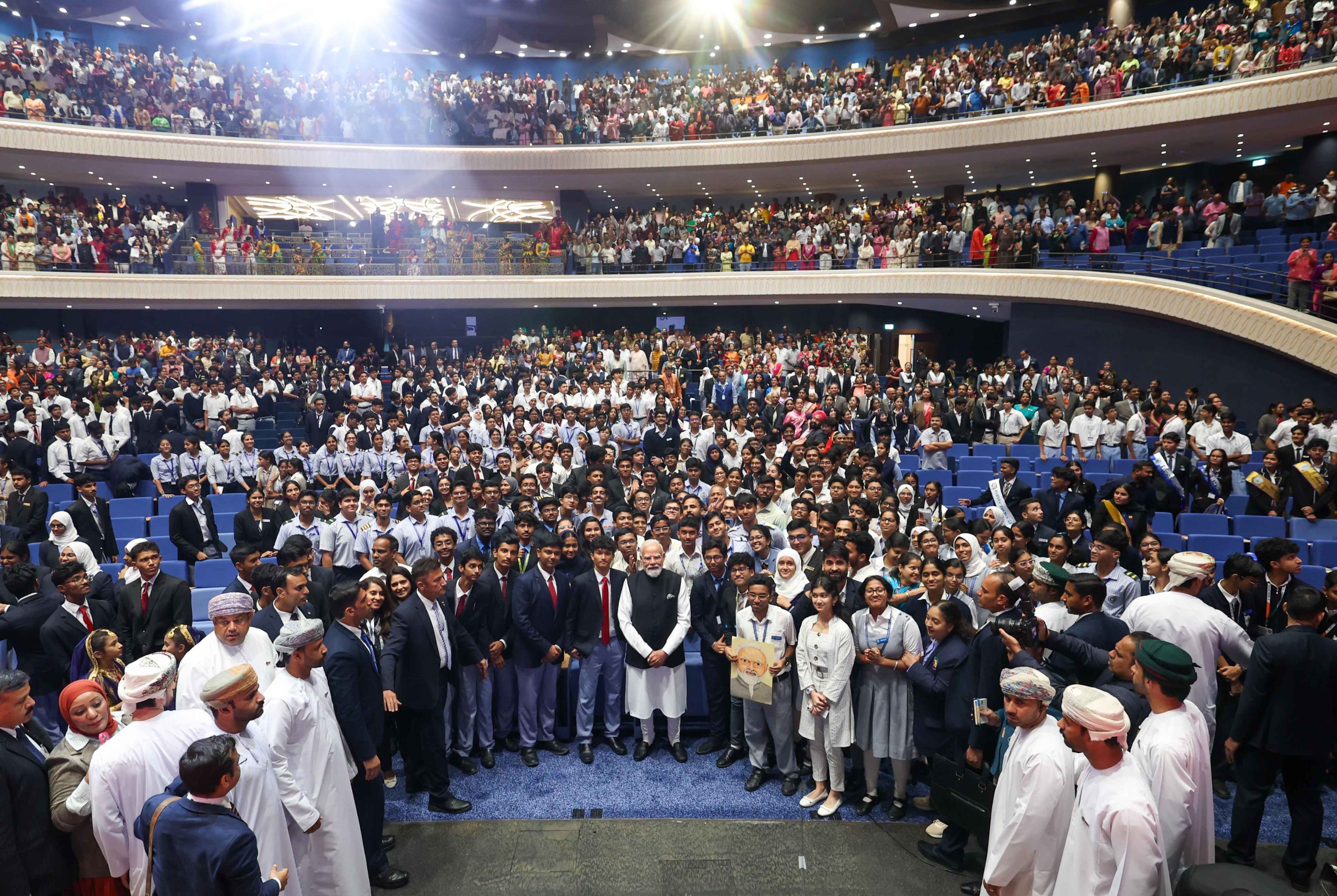 Prime Minister Shri Narendra Modi interacted with members of the Indian community, including students in during the Maitri Parv programme at OCEC in Muscat, Oman